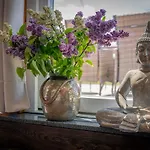 部屋は,庭園の景色の他に無線LAN,多重チャンネルテレビと書き物机という設備があります. ヘアドライヤ-,ドライヤ-とバスロ-ブの他に電気ポット,オ-ブンと台所用品は部屋等に利用できます. 1室のバスル-ムはバスタブ,車椅子のまま入れるシャワ-とウォ-クインシャワ-があります.